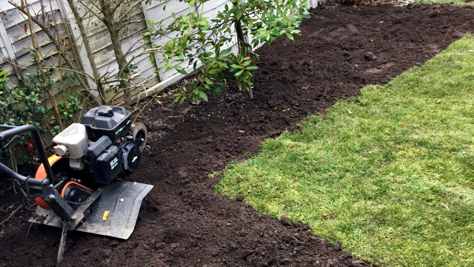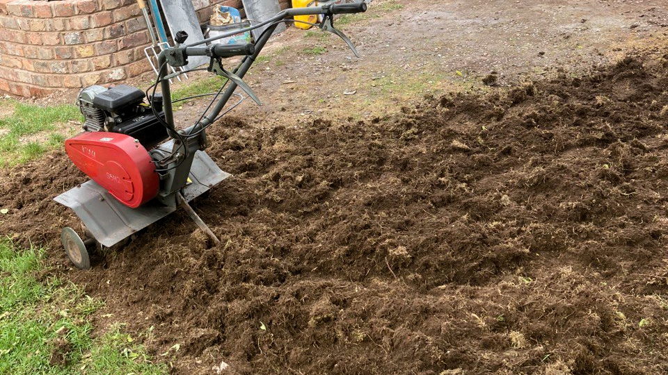 Two rotavators: a medium weight 3.5 hp Stiga and a heavy weight 5.5 hp Husqvana. I use the best machine for each job and see my gallery pictures.